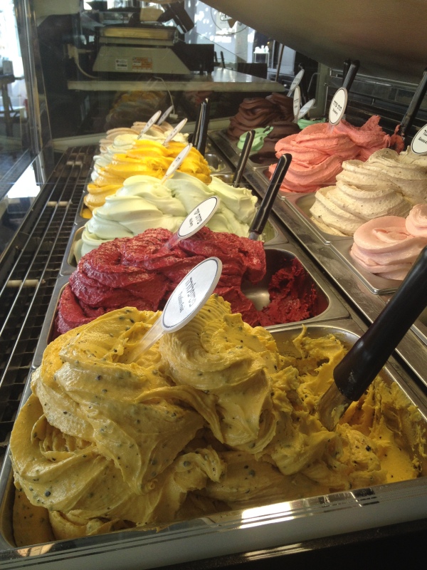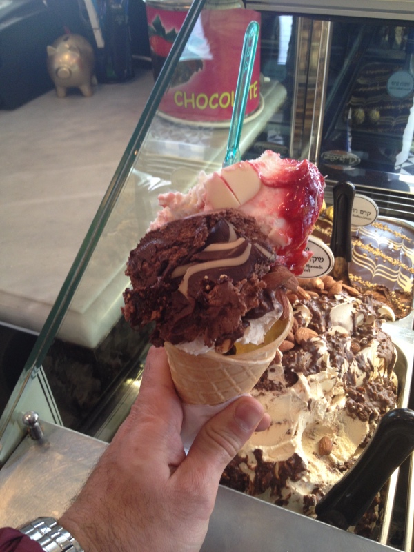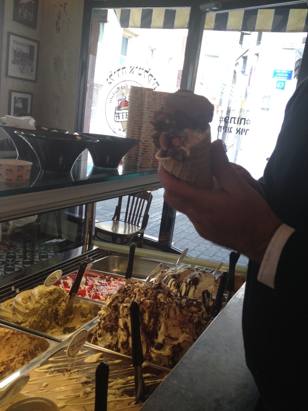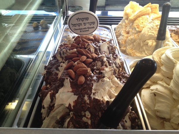 בין טעמי גלידה שטעמתי: אגוזי לוז, פררו רושה, תותים עם שוקולד לבן, קינדר בואנו, קרמשניט, בננה-תמר.
