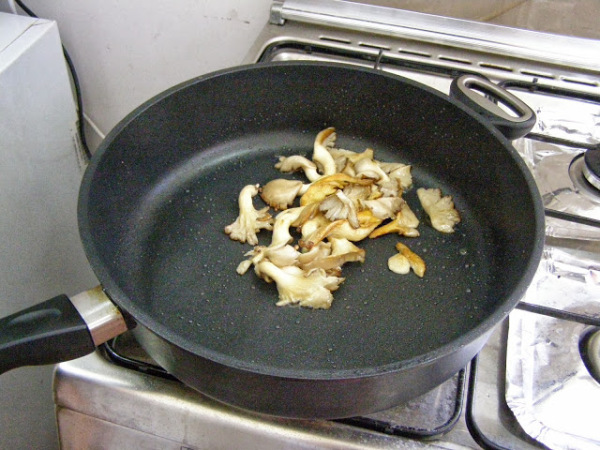 חותכים את הפטריות לפרוסות, צולים במחבת.